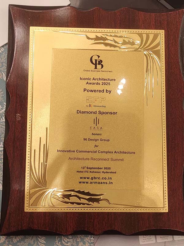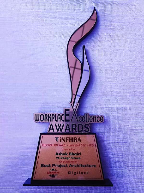 "The Transformation of Clients Vision into an Aesthetical and Functional Reality is the Key in 96 DG Work Culture. The Integration of Context, Spaces, Material, Ambience and Nature Drives the Design Philosophy for the Building Architecture and the Interior Design of the Spaces in a Sustainable Passion"